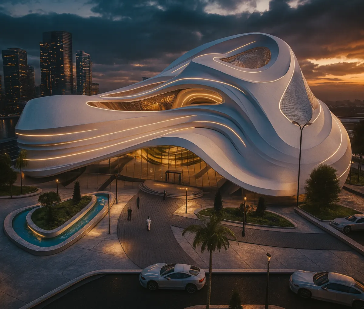 Zaha Hadid–Inspired Skyscraper (Surface Workflow)