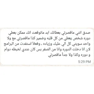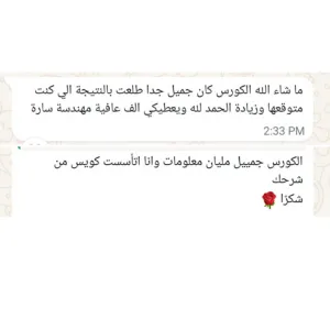 مدة الكورس شهر تقريبًا إذا كنت ملتزم ببرنامج المتابعة والتطبيق.